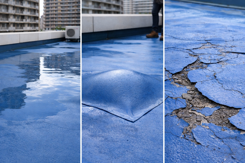 特に「膨れ」は、防水層の内部に水分や空気が入り込んでいる証拠です。放置すると一気に劣化が進むため、早めの対応が必要です。